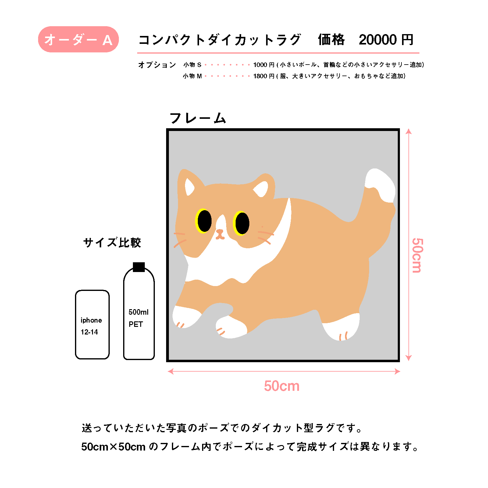 本商品は 50×50cm以内のフレームに収まるよう、ポーズに合わせてデザインされた「ダイカット型ラグ」です。
